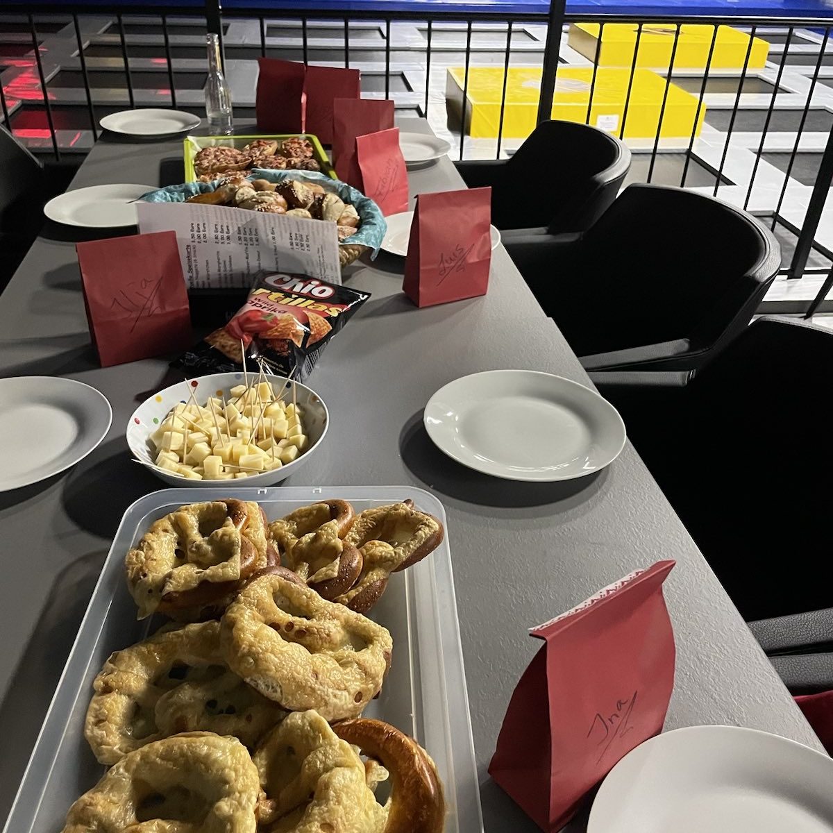 Nach1 ½ Stunden Spaß waren alle ziemlich erschöpft und froh, dass es im Anschluss noch einen kleinen Imbiss gab, der von den Eltern vorbereitet worden war. Zu guter Letzt bekamen alle noch ein kleines „Weihnachtsgeschenk“ von den Jugendtrainern Thomas und Anna: Tennissocken mit Tischtennisschläger-Symbol!